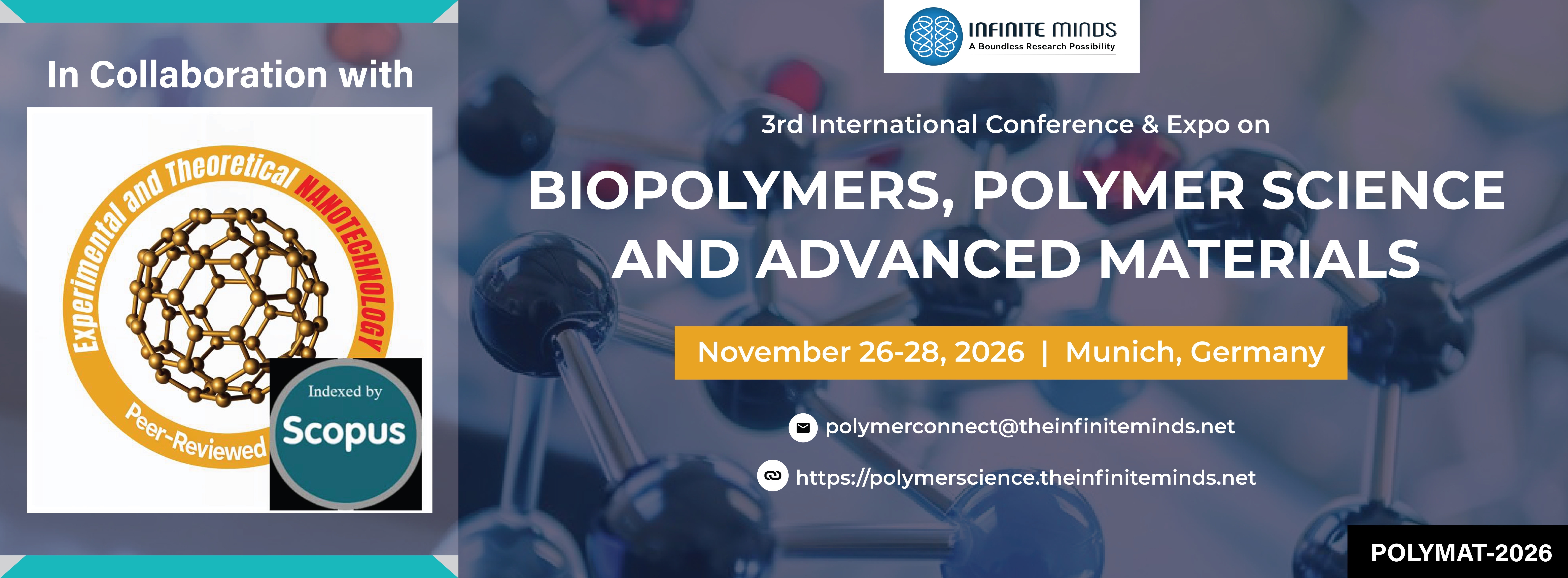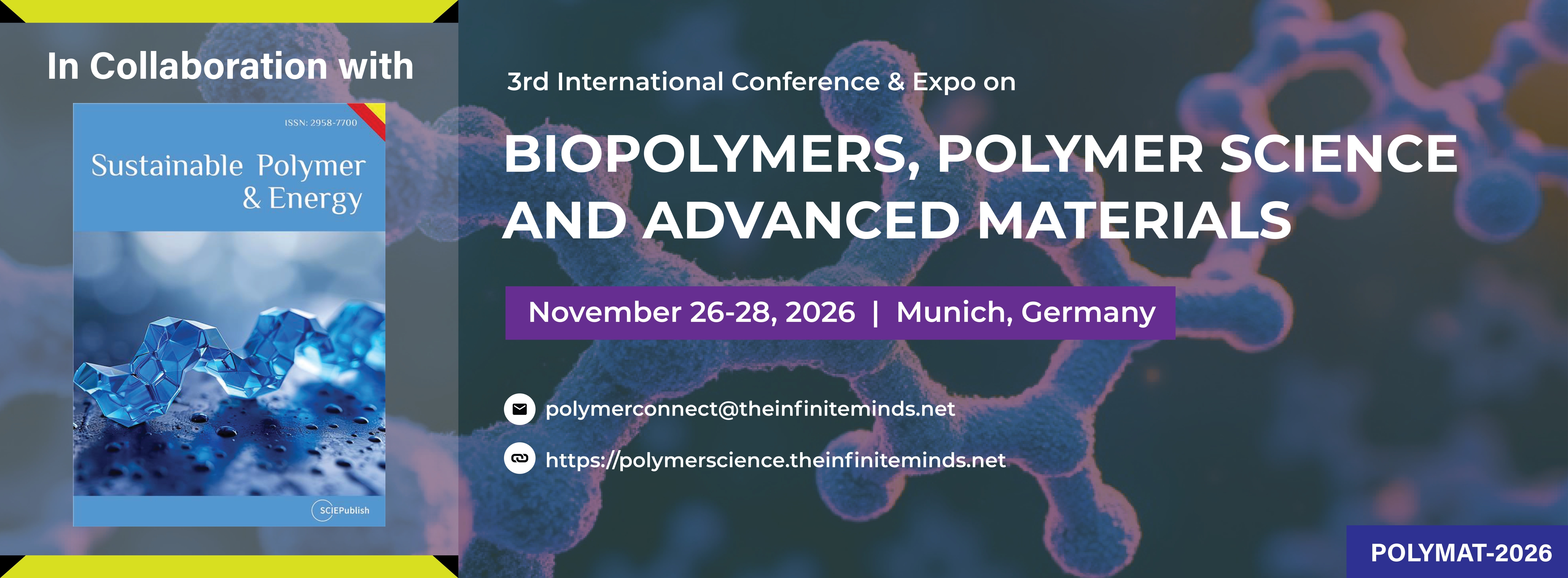 Join us from November 26–28, 2026, in Munich, Germany, for the 3rd International Conference & Expo on Biopolymers, Polymer Science and Advanced Materials (POLYMAT-2026)—a premier international forum bringing together researchers, academicians, industry experts, and innovators from around the world.